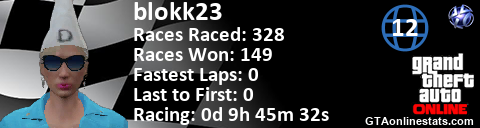 <a href="http://GTAonlinestats.com/showplayer/blokk23/2"><img src="http://GTAonlinestats.com/racesignature/blokk23/2/sig.png" alt="blokk23" border="0" /></a>