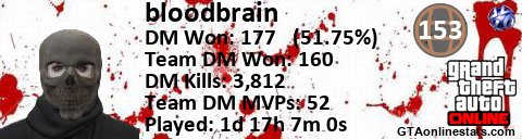 [URL=http://GTAonlinestats.com/showplayer/bloodbrain][IMG]http://GTAonlinestats.com/dmsignature/bloodbrain/sig.png[/IMG][/URL]