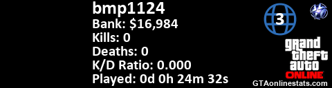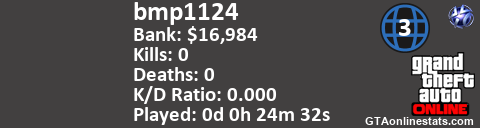 <a href="http://GTAonlinestats.com/showplayer/bmp1124/2"><img src="http://GTAonlinestats.com/greysignature/bmp1124/2/sig.png" alt="bmp1124" border="0" /></a>
