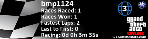 <a href="http://GTAonlinestats.com/showplayer/bmp1124/2"><img src="http://GTAonlinestats.com/racesignature/bmp1124/2/sig.png" alt="bmp1124" border="0" /></a>