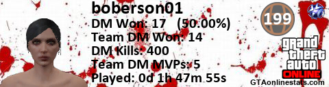[URL=http://GTAonlinestats.com/showplayer/boberson01][IMG]http://GTAonlinestats.com/dmsignature/boberson01/sig.png[/IMG][/URL]