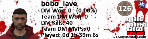 <a href="http://GTAonlinestats.com/showplayer/bobo_lave"><img src="http://GTAonlinestats.com/dmsignature/bobo_lave/sig.png" alt="bobo_lave" border="0" /></a>