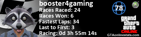 [URL=http://GTAonlinestats.com/showplayer/booster4gaming][IMG]http://GTAonlinestats.com/racesignature/booster4gaming/sig.png[/IMG][/URL]