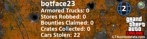 [URL=http://GTAonlinestats.com/showplayer/botface23/2][IMG]http://GTAonlinestats.com/crimesignature/botface23/2/sig.png[/IMG][/URL]
