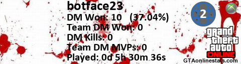 [URL=http://GTAonlinestats.com/showplayer/botface23/2][IMG]http://GTAonlinestats.com/dmsignature/botface23/2/sig.png[/IMG][/URL]