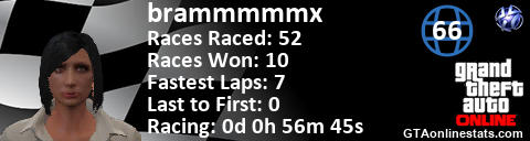 <a href="http://GTAonlinestats.com/showplayer/brammmmmx/2"><img src="http://GTAonlinestats.com/racesignature/brammmmmx/2/sig.png" alt="brammmmmx" border="0" /></a>