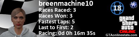 [URL=http://GTAonlinestats.com/showplayer/breenmachine10][IMG]http://GTAonlinestats.com/racesignature/breenmachine10/sig.png[/IMG][/URL]