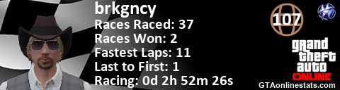 <a href="http://GTAonlinestats.com/showplayer/brkgncy"><img src="http://GTAonlinestats.com/racesignature/brkgncy/sig.png" alt="BrkGncy" border="0" /></a>