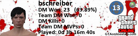 <a href="http://GTAonlinestats.com/showplayer/bschreiber/2"><img src="http://GTAonlinestats.com/dmsignature/bschreiber/2/sig.png" alt="bschreiber" border="0" /></a>
