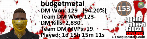 [URL=http://GTAonlinestats.com/showplayer/budgetmetal][IMG]http://GTAonlinestats.com/dmsignature/budgetmetal/sig.png[/IMG][/URL]