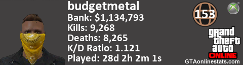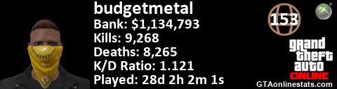<a href="http://GTAonlinestats.com/showplayer/budgetmetal"><img src="http://GTAonlinestats.com/signature/budgetmetal/sig.png" alt="budgetmetal" border="0" /></a>
