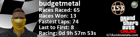 [URL=http://GTAonlinestats.com/showplayer/budgetmetal][IMG]http://GTAonlinestats.com/racesignature/budgetmetal/sig.png[/IMG][/URL]