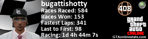 <a href="http://GTAonlinestats.com/showplayer/bugattishotty"><img src="http://GTAonlinestats.com/racesignature/bugattishotty/sig.png" alt="bugattishotty" border="0" /></a>