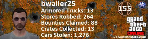 <a href="http://GTAonlinestats.com/showplayer/bwaller25"><img src="http://GTAonlinestats.com/randomsignature/bwaller25/sig.png" alt="bwaller25" border="0" /></a>