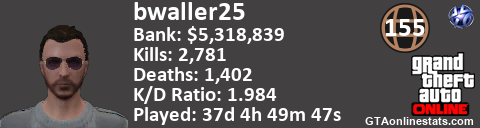 <a href="http://GTAonlinestats.com/showplayer/bwaller25"><img src="http://GTAonlinestats.com/dmsignature/bwaller25/sig.png" alt="bwaller25" border="0" /></a>