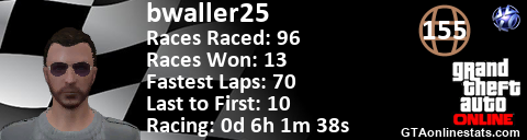 <a href="http://GTAonlinestats.com/showplayer/bwaller25"><img src="http://GTAonlinestats.com/racesignature/bwaller25/sig.png" alt="bwaller25" border="0" /></a>