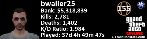 <a href="http://GTAonlinestats.com/showplayer/bwaller25"><img src="http://GTAonlinestats.com/signature/bwaller25/sig.png" alt="bwaller25" border="0" /></a>