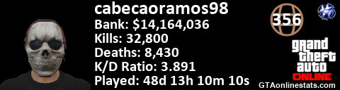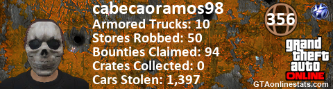 [URL=http://GTAonlinestats.com/showplayer/cabecaoramos98][IMG]http://GTAonlinestats.com/crimesignature/cabecaoramos98/sig.png[/IMG][/URL]