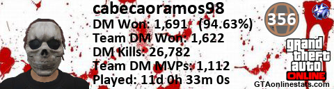 [URL=http://GTAonlinestats.com/showplayer/cabecaoramos98][IMG]http://GTAonlinestats.com/signature/cabecaoramos98/sig.png[/IMG][/URL]