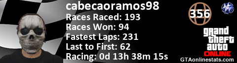 [URL=http://GTAonlinestats.com/showplayer/cabecaoramos98][IMG]http://GTAonlinestats.com/racesignature/cabecaoramos98/sig.png[/IMG][/URL]