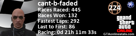 <a href="http://GTAonlinestats.com/showplayer/cant-b-faded"><img src="http://GTAonlinestats.com/racesignature/cant-b-faded/sig.png" alt="cant-b-faded" border="0" /></a>