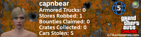 <a href="http://GTAonlinestats.com/showplayer/capnbear/2"><img src="http://GTAonlinestats.com/crimesignature/capnbear/2/sig.png" alt="capnbear" border="0" /></a>