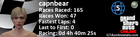 [URL=http://GTAonlinestats.com/showplayer/capnbear/2][IMG]http://GTAonlinestats.com/racesignature/capnbear/2/sig.png[/IMG][/URL]