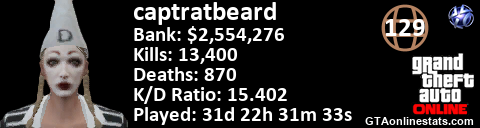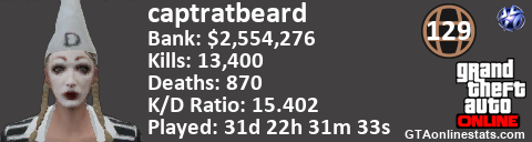 <a href="http://GTAonlinestats.com/showplayer/captratbeard"><img src="http://GTAonlinestats.com/randomsignature/captratbeard/sig.png" alt="CaptRatBeard" border="0" /></a>