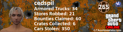 [URL=http://GTAonlinestats.com/showplayer/cedspil][IMG]http://GTAonlinestats.com/crimesignature/cedspil/sig.png[/IMG][/URL]