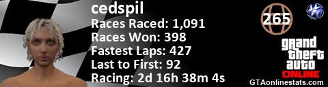 <a href="http://GTAonlinestats.com/showplayer/cedspil"><img src="http://GTAonlinestats.com/racesignature/cedspil/sig.png" alt="cedspil" border="0" /></a>