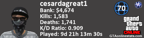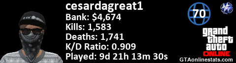 [URL=http://GTAonlinestats.com/showplayer/cesardagreat1][IMG]http://GTAonlinestats.com/dmsignature/cesardagreat1/sig.png[/IMG][/URL]