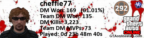 [URL=http://GTAonlinestats.com/showplayer/cheffie77][IMG]http://GTAonlinestats.com/dmsignature/cheffie77/sig.png[/IMG][/URL]