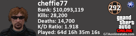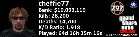 <a href="http://GTAonlinestats.com/showplayer/cheffie77"><img src="http://GTAonlinestats.com/dmsignature/cheffie77/sig.png" alt="cheffie77" border="0" /></a>