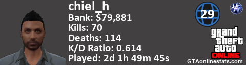 <a href="http://GTAonlinestats.com/showplayer/chiel_h"><img src="http://GTAonlinestats.com/randomsignature/chiel_h/sig.png" alt="Chiel_h" border="0" /></a>