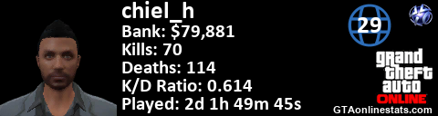 <a href="http://GTAonlinestats.com/showplayer/chiel_h"><img src="http://GTAonlinestats.com/signature/chiel_h/sig.png" alt="Chiel_h" border="0" /></a>