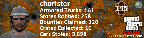 <a href="http://GTAonlinestats.com/showplayer/chorlster"><img src="http://GTAonlinestats.com/randomsignature/chorlster/sig.png" alt="Chorlster" border="0" /></a>