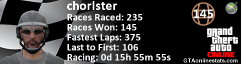 <a href="http://GTAonlinestats.com/showplayer/chorlster"><img src="http://GTAonlinestats.com/racesignature/chorlster/sig.png" alt="Chorlster" border="0" /></a>