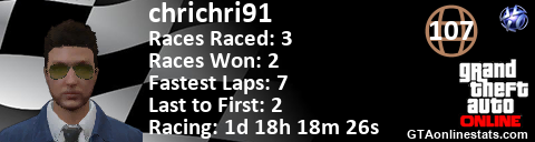 <a href="http://GTAonlinestats.com/showplayer/chrichri91"><img src="http://GTAonlinestats.com/racesignature/chrichri91/sig.png" alt="chrichri91" border="0" /></a>