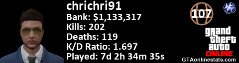 <a href="http://GTAonlinestats.com/showplayer/chrichri91"><img src="http://GTAonlinestats.com/randomsignature/chrichri91/sig.png" alt="chrichri91" border="0" /></a>