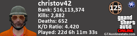 [URL=http://GTAonlinestats.com/showplayer/christov42][IMG]http://GTAonlinestats.com/signature/christov42/sig.png[/IMG][/URL]