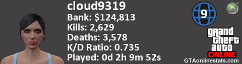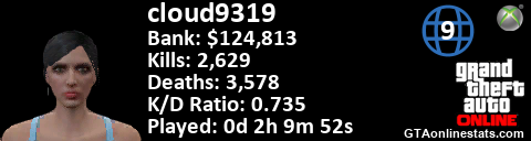 <a href="http://GTAonlinestats.com/showplayer/cloud9319/2"><img src="http://GTAonlinestats.com/dmsignature/cloud9319/2/sig.png" alt="cloud9319" border="0" /></a>
