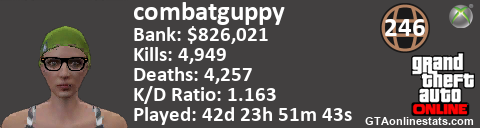 [URL=http://GTAonlinestats.com/showplayer/combatguppy][IMG]http://GTAonlinestats.com/signature/combatguppy/sig.png[/IMG][/URL]