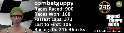 [URL=http://GTAonlinestats.com/showplayer/combatguppy][IMG]http://GTAonlinestats.com/racesignature/combatguppy/sig.png[/IMG][/URL]