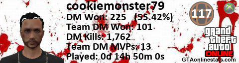 [URL=http://GTAonlinestats.com/showplayer/cookiemonster79][IMG]http://GTAonlinestats.com/dmsignature/cookiemonster79/sig.png[/IMG][/URL]