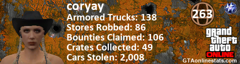 <a href="http://GTAonlinestats.com/showplayer/coryay"><img src="http://GTAonlinestats.com/randomsignature/coryay/sig.png" alt="CorYay" border="0" /></a>