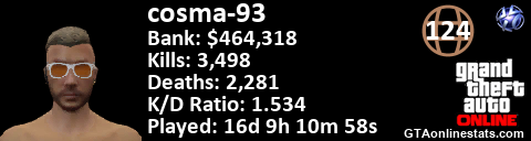 <a href="http://GTAonlinestats.com/showplayer/cosma-93"><img src="http://GTAonlinestats.com/randomsignature/cosma-93/sig.png" alt="cosma-93" border="0" /></a>