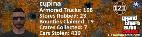 [URL=http://GTAonlinestats.com/showplayer/cupina/2][IMG]http://GTAonlinestats.com/crimesignature/cupina/2/sig.png[/IMG][/URL]