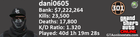 <a href="http://GTAonlinestats.com/showplayer/dani0605"><img src="http://GTAonlinestats.com/dmsignature/dani0605/sig.png" alt="dani0605" border="0" /></a>