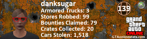 [URL=http://GTAonlinestats.com/showplayer/danksugar][IMG]http://GTAonlinestats.com/randomsignature/danksugar/sig.png[/IMG][/URL]