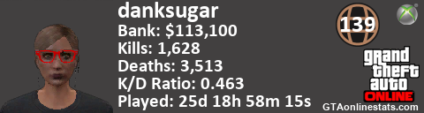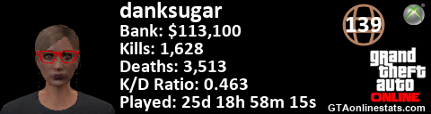 <a href="http://GTAonlinestats.com/showplayer/danksugar"><img src="http://GTAonlinestats.com/signature/danksugar/sig.png" alt="danksugar" border="0" /></a>